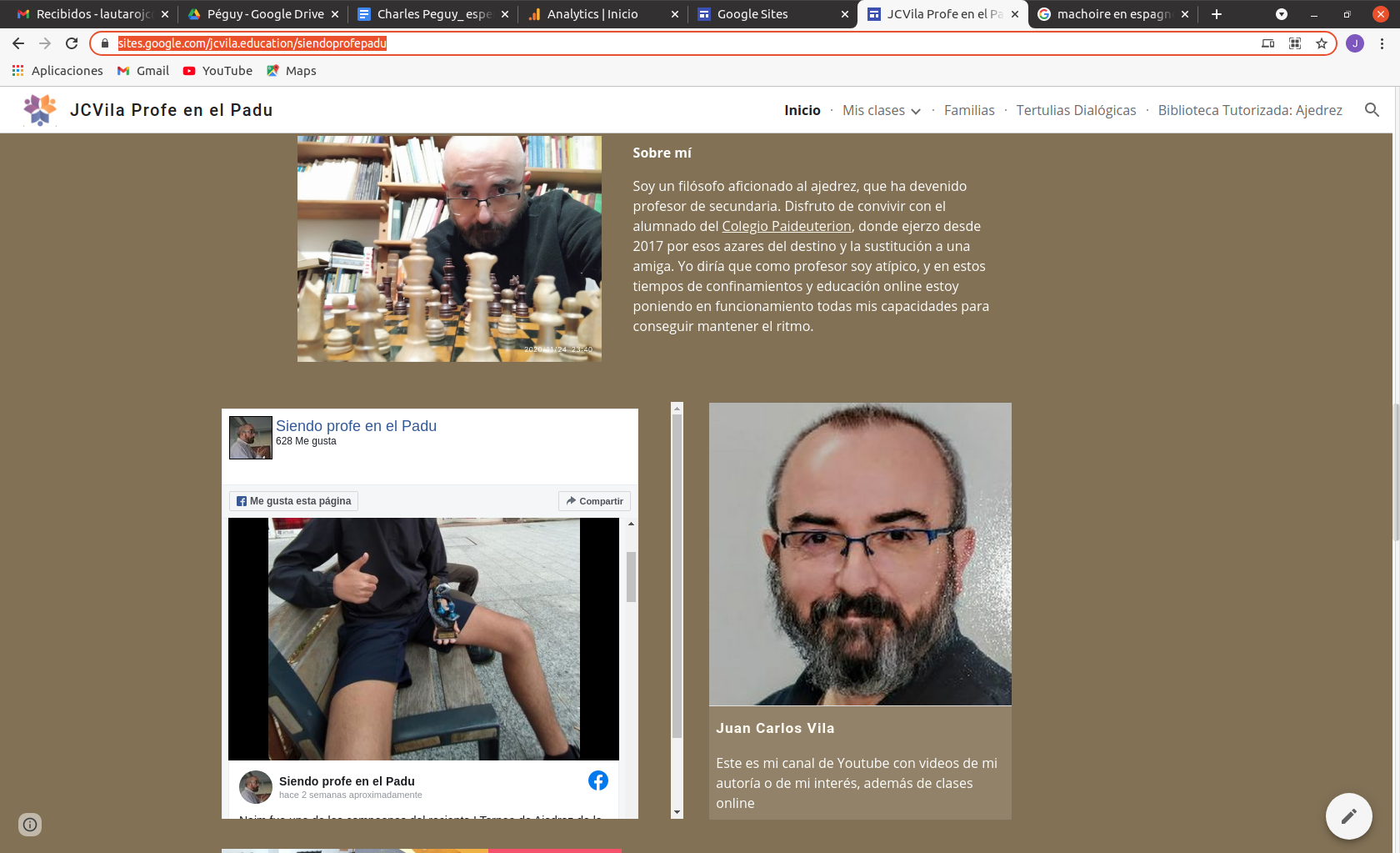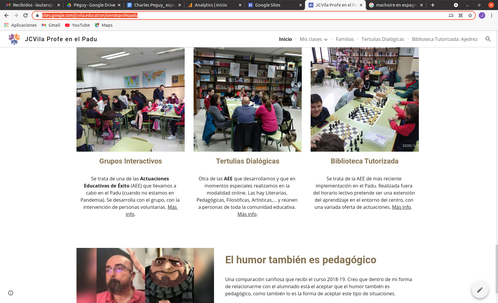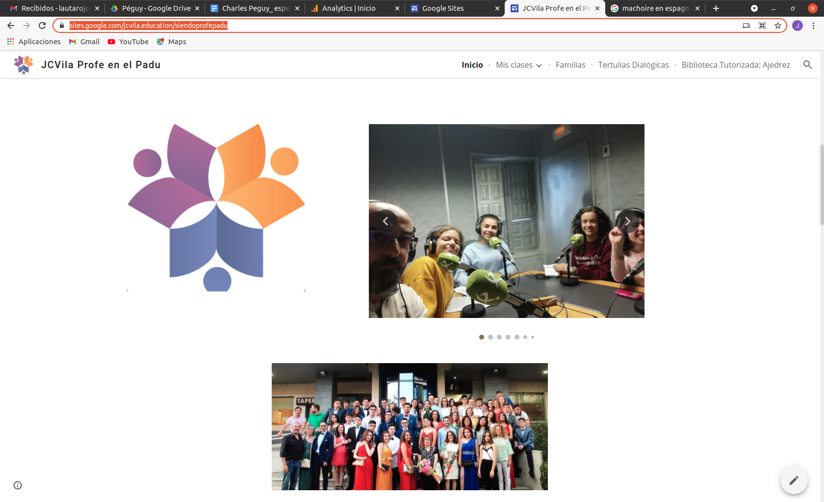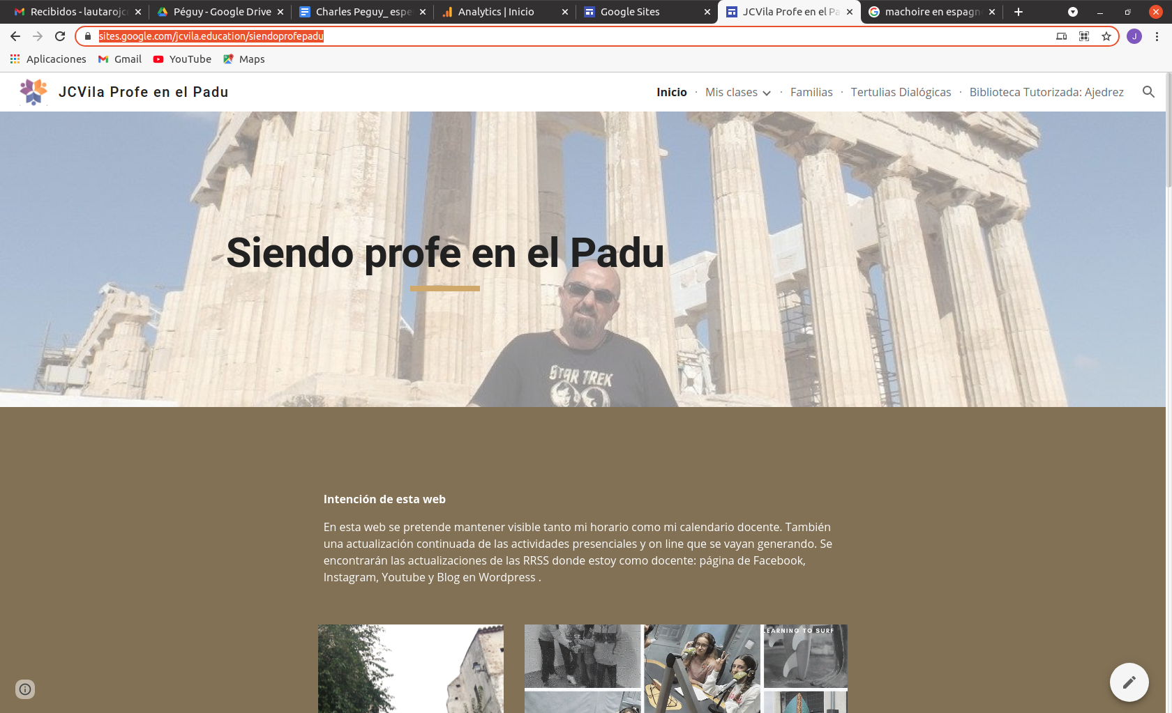 Dentro de mi tarea como docente tengo este Site en Google donde muestro lo que hago que se llama Siendo Profe en el Padu, igual que mi Instagam y mi página de Facebook